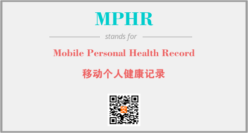 上述内容是“Mobile Personal Health Record”作为“MPHR”的缩写,解释为“移动个人健康记录”时的信息,以及英文缩略词MPHR所代表的英文单词,其对应的中文拼音、详细解释以及在英文中的流行度和相关分类、应用领域及应用示例等。