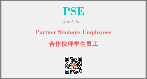 上述内容是“Partner Students Employees”作为“PSE”的缩写,解释为“合作伙伴学生员工”时的信息,以及英文缩略词PSE所代表的英文单词,其对应的中文拼音、详细解释以及在英文中的流行度和相关分类、应用领域及应用示例等。