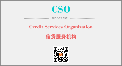 英文缩略词“CSO”经常作为“Credit Services Organization”的英文缩写来使用,中文表示:“信贷服务机构”。本文将详细介绍英文缩写词CSO所代表英文单词,其对应的中文拼音、详细解释以及在英语中的流行度。此外,还有关于缩略词CSO的分类、应用领域及相关应用示例等。