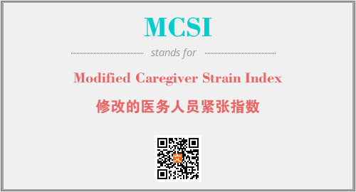 上述内容是“Modified Caregiver Strain Index”作为“MCSI”的缩写,解释为“修改的医务人员紧张指数”时的信息,以及英文缩略词MCSI所代表的英文单词,其对应的中文拼音、详细解释以及在英文中的流行度和相关分类、应用领域及应用示例等。