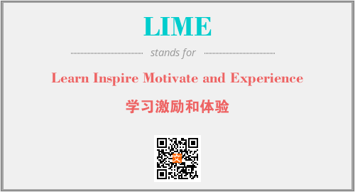 上述内容是“Learn Inspire Motivate and Experience”作为“LIME”的缩写,解释为“学习激励和体验”时的信息,以及英文缩略词LIME所代表的英文单词,其对应的中文拼音、详细解释以及在英文中的流行度和相关分类、应用领域及应用示例等。