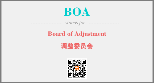 英文缩略词“BOA”经常作为“Board of Adjustment”的英文缩写来使用,中文表示:“调整委员会”。本文将详细介绍英文缩写词BOA所代表英文单词,其对应的中文拼音、详细解释以及在英语中的流行度。此外,还有关于缩略词BOA的分类、应用领域及相关应用示例等。