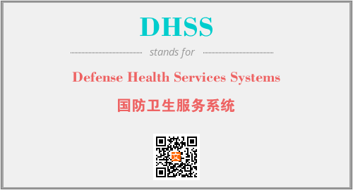 上述内容是“Defense Health Services Systems”作为“DHSS”的缩写,解释为“国防卫生服务系统”时的信息,以及英文缩略词DHSS所代表的英文单词,其对应的中文拼音、详细解释以及在英文中的流行度和相关分类、应用领域及应用示例等。