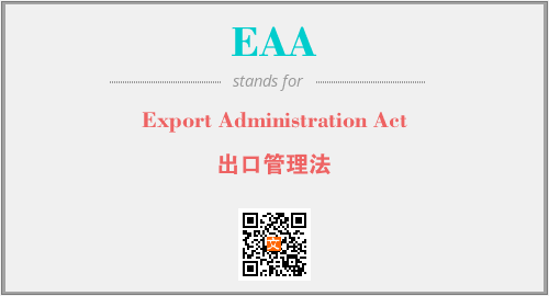 上述内容是“Export Administration Act”作为“EAA”的缩写,解释为“出口管理法”时的信息,以及英文缩略词EAA所代表的英文单词,其对应的中文拼音、详细解释以及在英文中的流行度和相关分类、应用领域及应用示例等。