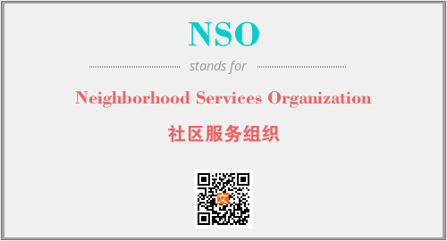 上述内容是“Neighborhood Services Organization”作为“NSO”的缩写,解释为“社区服务组织”时的信息,以及英文缩略词NSO所代表的英文单词,其对应的中文拼音、详细解释以及在英文中的流行度和相关分类、应用领域及应用示例等。