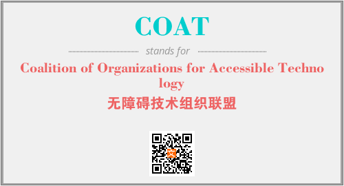 英文缩略词“COAT”经常作为“Coalition of Organizations for Accessible Technology”的英文缩写来使用,中文表示:“无障碍技术组织联盟”。本文将详细介绍英文缩写词COAT所代表英文单词,其对应的中文拼音、详细解释以及在英语中的流行度。此外,还有关于缩略词COAT的分类、应用领域及相关应用示例等。