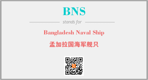 上述内容是“Bangladesh Naval Ship”作为“BNS”的缩写,解释为“孟加拉国海军舰只”时的信息,以及英文缩略词BNS所代表的英文单词,其对应的中文拼音、详细解释以及在英文中的流行度和相关分类、应用领域及应用示例等。