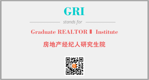 英文缩略词“GRI”经常作为“Graduate REALTOR® Institute”的英文缩写来使用,中文表示:“房地产经纪人研究生院”。本文将详细介绍英文缩写词GRI所代表英文单词,其对应的中文拼音、详细解释以及在英语中的流行度。此外,还有关于缩略词GRI的分类、应用领域及相关应用示例等。