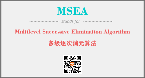 英文缩略词“MSEA”经常作为“Multilevel Successive Elimination Algorithm”的英文缩写来使用,中文表示:“多级逐次消元算法”。本文将详细介绍英文缩写词MSEA所代表英文单词,其对应的中文拼音、详细解释以及在英语中的流行度。此外,还有关于缩略词MSEA的分类、应用领域及相关应用示例等。