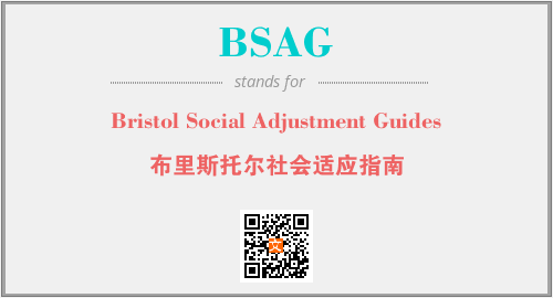 上述内容是“Bristol Social Adjustment Guides”作为“BSAG”的缩写,解释为“布里斯托尔社会适应指南”时的信息,以及英文缩略词BSAG所代表的英文单词,其对应的中文拼音、详细解释以及在英文中的流行度和相关分类、应用领域及应用示例等。