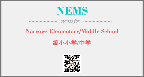 上述内容是“Narrows Elementary/Middle School”作为“NEMS”的缩写,解释为“缩小小学/中学”时的信息,以及英文缩略词NEMS所代表的英文单词,其对应的中文拼音、详细解释以及在英文中的流行度和相关分类、应用领域及应用示例等。