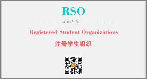 上述内容是“Registered Student Organizations”作为“RSO”的缩写,解释为“注册学生组织”时的信息,以及英文缩略词RSO所代表的英文单词,其对应的中文拼音、详细解释以及在英文中的流行度和相关分类、应用领域及应用示例等。