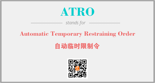 以上为Automatic Temporary Restraining Order英文缩略词ATRO的中文解释,以及该英文缩写在英语的流行度、分类和应用领域方面的信息。