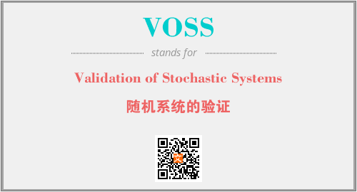 英文缩略词“VOSS”经常作为“Validation of Stochastic Systems”的英文缩写来使用,中文表示:“随机系统的验证”。本文将详细介绍英文缩写词VOSS所代表英文单词,其对应的中文拼音、详细解释以及在英语中的流行度。此外,还有关于缩略词VOSS的分类、应用领域及相关应用示例等。