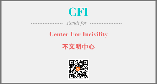上述内容是“Center For Incivility”作为“CFI”的缩写,解释为“不文明中心”时的信息,以及英文缩略词CFI所代表的英文单词,其对应的中文拼音、详细解释以及在英文中的流行度和相关分类、应用领域及应用示例等。