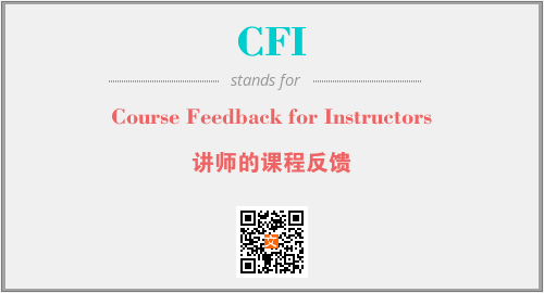 英文缩略词“CFI”经常作为“Course Feedback for Instructors”的英文缩写来使用,中文表示:“讲师的课程反馈”。本文将详细介绍英文缩写词CFI所代表英文单词,其对应的中文拼音、详细解释以及在英语中的流行度。此外,还有关于缩略词CFI的分类、应用领域及相关应用示例等。