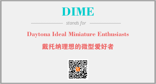 上述内容是“Daytona Ideal Miniature Enthusiasts”作为“DIME”的缩写,解释为“戴托纳理想的微型爱好者”时的信息,以及英文缩略词DIME所代表的英文单词,其对应的中文拼音、详细解释以及在英文中的流行度和相关分类、应用领域及应用示例等。