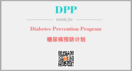 上述内容是“Diabetes Prevention Program”作为“DPP”的缩写,解释为“糖尿病预防计划”时的信息,以及英文缩略词DPP所代表的英文单词,其对应的中文拼音、详细解释以及在英文中的流行度和相关分类、应用领域及应用示例等。