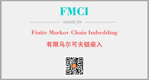 英文缩略词“FMCI”经常作为“Finite Markov Chain Imbedding”的英文缩写来使用,中文表示:“有限马尔可夫链嵌入”。本文将详细介绍英文缩写词FMCI所代表英文单词,其对应的中文拼音、详细解释以及在英语中的流行度。此外,还有关于缩略词FMCI的分类、应用领域及相关应用示例等。