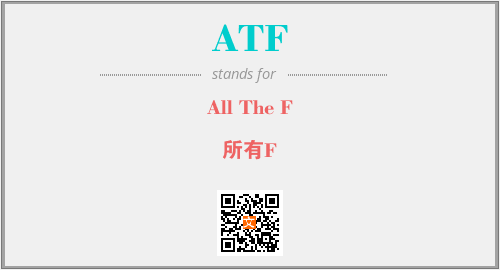 英文缩略词“ATF”经常作为“All The F”的英文缩写来使用,中文表示:“所有F”。本文将详细介绍英文缩写词ATF所代表英文单词,其对应的中文拼音、详细解释以及在英语中的流行度。此外,还有关于缩略词ATF的分类、应用领域及相关应用示例等。
