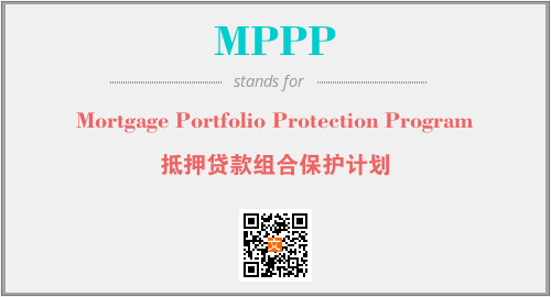 英文缩略词“MPPP”经常作为“Mortgage Portfolio Protection Program”的英文缩写来使用,中文表示:“抵押贷款组合保护计划”。本文将详细介绍英文缩写词MPPP所代表英文单词,其对应的中文拼音、详细解释以及在英语中的流行度。此外,还有关于缩略词MPPP的分类、应用领域及相关应用示例等。
