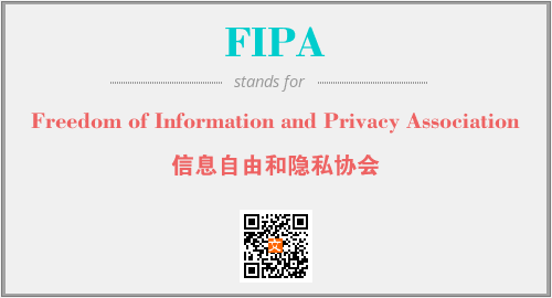 上述内容是“Freedom of Information and Privacy Association”作为“FIPA”的缩写,解释为“信息自由和隐私协会”时的信息,以及英文缩略词FIPA所代表的英文单词,其对应的中文拼音、详细解释以及在英文中的流行度和相关分类、应用领域及应用示例等。