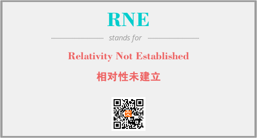 上述内容是“Relativity Not Established”作为“RNE”的缩写,解释为“相对性未建立”时的信息,以及英文缩略词RNE所代表的英文单词,其对应的中文拼音、详细解释以及在英文中的流行度和相关分类、应用领域及应用示例等。