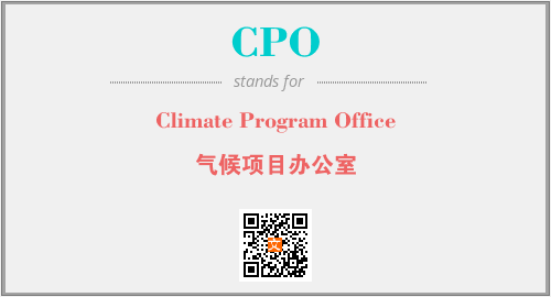 英文缩略词“CPO”经常作为“Climate Program Office”的英文缩写来使用,中文表示:“气候项目办公室”。本文将详细介绍英文缩写词CPO所代表英文单词,其对应的中文拼音、详细解释以及在英语中的流行度。此外,还有关于缩略词CPO的分类、应用领域及相关应用示例等。