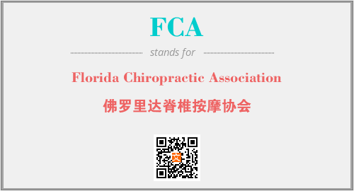 上述内容是“Florida Chiropractic Association”作为“FCA”的缩写,解释为“佛罗里达脊椎按摩协会”时的信息,以及英文缩略词FCA所代表的英文单词,其对应的中文拼音、详细解释以及在英文中的流行度和相关分类、应用领域及应用示例等。