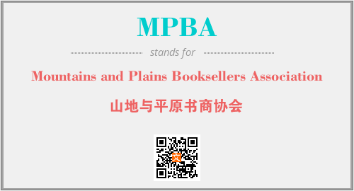 以上为Mountains and Plains Booksellers Association英文缩略词MPBA的中文解释,以及该英文缩写在英语的流行度、分类和应用领域方面的信息。