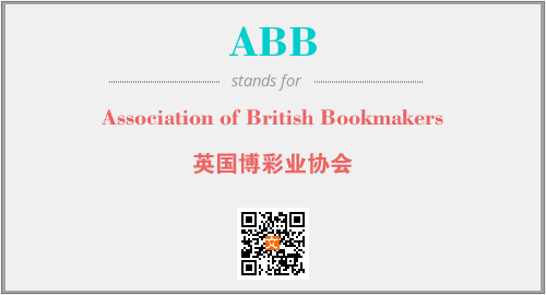 英文缩略词“ABB”经常作为“Association of British Bookmakers”的英文缩写来使用,中文表示:“英国博彩业协会”。本文将详细介绍英文缩写词ABB所代表英文单词,其对应的中文拼音、详细解释以及在英语中的流行度。此外,还有关于缩略词ABB的分类、应用领域及相关应用示例等。