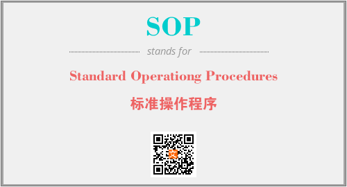 上述内容是“Standard Operationg Procedures”作为“SOP”的缩写,解释为“标准操作程序”时的信息,以及英文缩略词SOP所代表的英文单词,其对应的中文拼音、详细解释以及在英文中的流行度和相关分类、应用领域及应用示例等。