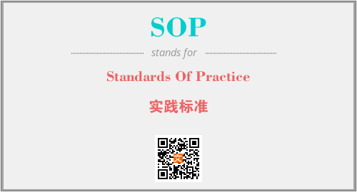 英文缩略词“SOP”经常作为“Standards Of Practice”的英文缩写来使用,中文表示:“实践标准”。本文将详细介绍英文缩写词SOP所代表英文单词,其对应的中文拼音、详细解释以及在英语中的流行度。此外,还有关于缩略词SOP的分类、应用领域及相关应用示例等。