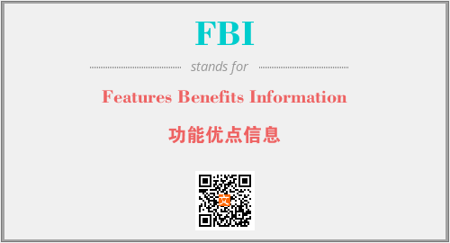 上述内容是“Features Benefits Information”作为“FBI”的缩写,解释为“功能优点信息”时的信息,以及英文缩略词FBI所代表的英文单词,其对应的中文拼音、详细解释以及在英文中的流行度和相关分类、应用领域及应用示例等。