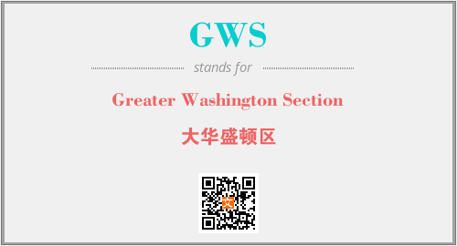 上述内容是“Greater Washington Section”作为“GWS”的缩写,解释为“大华盛顿区”时的信息,以及英文缩略词GWS所代表的英文单词,其对应的中文拼音、详细解释以及在英文中的流行度和相关分类、应用领域及应用示例等。
