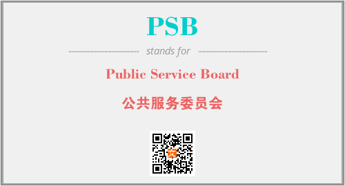 上述内容是“Public Service Board”作为“PSB”的缩写,解释为“公共服务委员会”时的信息,以及英文缩略词PSB所代表的英文单词,其对应的中文拼音、详细解释以及在英文中的流行度和相关分类、应用领域及应用示例等。