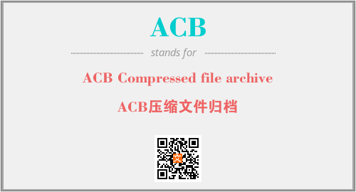 英文缩略词“ACB”经常作为“ACB Compressed file archive”的英文缩写来使用,中文表示:“ACB压缩文件归档”。本文将详细介绍英文缩写词ACB所代表英文单词,其对应的中文拼音、详细解释以及在英语中的流行度。此外,还有关于缩略词ACB的分类、应用领域及相关应用示例等。