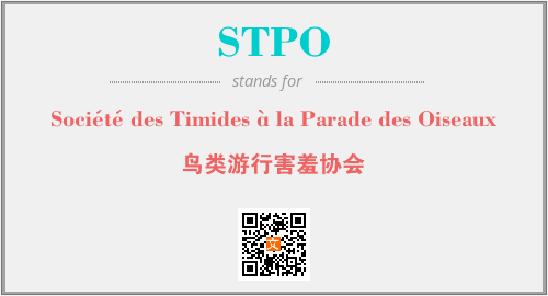 英文缩略词“STPO”经常作为“Société des Timides à la Parade des Oiseaux”的英文缩写来使用,中文表示:“鸟类游行害羞协会”。本文将详细介绍英文缩写词STPO所代表英文单词,其对应的中文拼音、详细解释以及在英语中的流行度。此外,还有关于缩略词STPO的分类、应用领域及相关应用示例等。