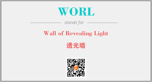上述内容是“Wall of Revealing Light”作为“WORL”的缩写,解释为“透光墙”时的信息,以及英文缩略词WORL所代表的英文单词,其对应的中文拼音、详细解释以及在英文中的流行度和相关分类、应用领域及应用示例等。