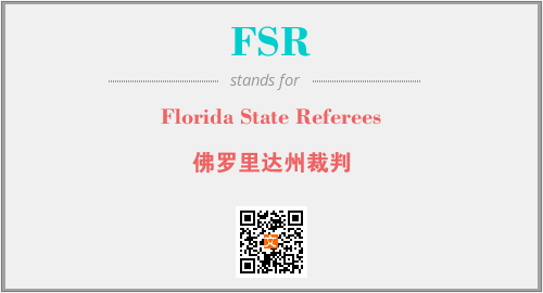 上述内容是“Florida State Referees”作为“FSR”的缩写,解释为“佛罗里达州裁判”时的信息,以及英文缩略词FSR所代表的英文单词,其对应的中文拼音、详细解释以及在英文中的流行度和相关分类、应用领域及应用示例等。