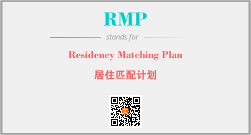 上述内容是“Residency Matching Plan”作为“RMP”的缩写,解释为“居住匹配计划”时的信息,以及英文缩略词RMP所代表的英文单词,其对应的中文拼音、详细解释以及在英文中的流行度和相关分类、应用领域及应用示例等。