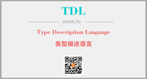 英文缩略词“TDL”经常作为“Type Description Language”的英文缩写来使用,中文表示:“类型描述语言”。本文将详细介绍英文缩写词TDL所代表英文单词,其对应的中文拼音、详细解释以及在英语中的流行度。此外,还有关于缩略词TDL的分类、应用领域及相关应用示例等。
