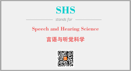 上述内容是“Speech and Hearing Science”作为“SHS”的缩写,解释为“言语与听觉科学”时的信息,以及英文缩略词SHS所代表的英文单词,其对应的中文拼音、详细解释以及在英文中的流行度和相关分类、应用领域及应用示例等。