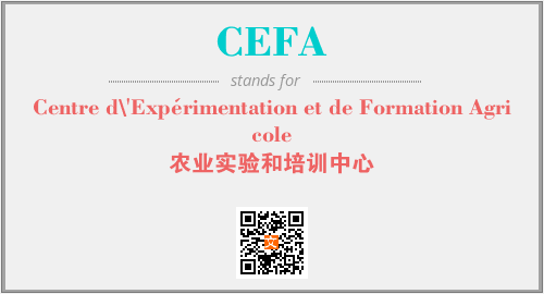 上述内容是“Centre d\'Expérimentation et de Formation Agricole”作为“CEFA”的缩写,解释为“农业实验和培训中心”时的信息,以及英文缩略词CEFA所代表的英文单词,其对应的中文拼音、详细解释以及在英文中的流行度和相关分类、应用领域及应用示例等。