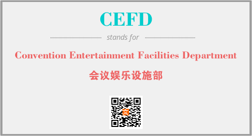 英文缩略词“CEFD”经常作为“Convention Entertainment Facilities Department”的英文缩写来使用,中文表示:“会议娱乐设施部”。本文将详细介绍英文缩写词CEFD所代表英文单词,其对应的中文拼音、详细解释以及在英语中的流行度。此外,还有关于缩略词CEFD的分类、应用领域及相关应用示例等。