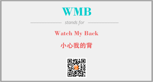 上述内容是“Watch My Back”作为“WMB”的缩写,解释为“小心我的背”时的信息,以及英文缩略词WMB所代表的英文单词,其对应的中文拼音、详细解释以及在英文中的流行度和相关分类、应用领域及应用示例等。