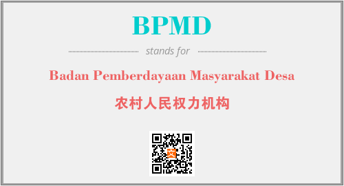 上述内容是“Badan Pemberdayaan Masyarakat Desa”作为“BPMD”的缩写,解释为“农村人民权力机构”时的信息,以及英文缩略词BPMD所代表的英文单词,其对应的中文拼音、详细解释以及在英文中的流行度和相关分类、应用领域及应用示例等。