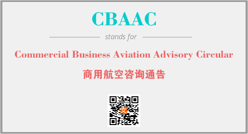 上述内容是“Commercial Business Aviation Advisory Circular”作为“CBAAC”的缩写,解释为“商用航空咨询通告”时的信息,以及英文缩略词CBAAC所代表的英文单词,其对应的中文拼音、详细解释以及在英文中的流行度和相关分类、应用领域及应用示例等。