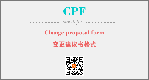 英文缩略词“CPF”经常作为“Change proposal form”的英文缩写来使用,中文表示:“变更建议书格式”。本文将详细介绍英文缩写词CPF所代表英文单词,其对应的中文拼音、详细解释以及在英语中的流行度。此外,还有关于缩略词CPF的分类、应用领域及相关应用示例等。