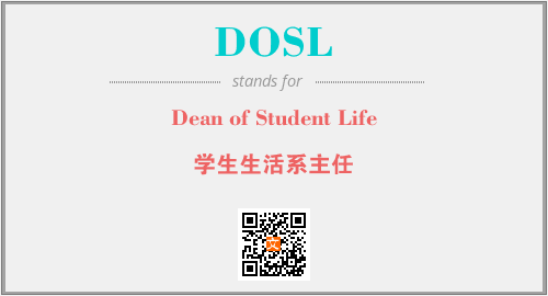 英文缩略词“DOSL”经常作为“Dean of Student Life”的英文缩写来使用,中文表示:“学生生活系主任”。本文将详细介绍英文缩写词DOSL所代表英文单词,其对应的中文拼音、详细解释以及在英语中的流行度。此外,还有关于缩略词DOSL的分类、应用领域及相关应用示例等。